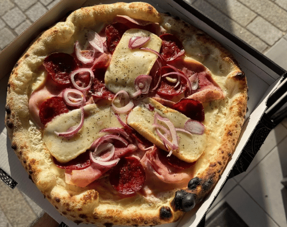 Nous avons créé des liens avec des producteurs et artisans passionnés, ce qui nous permet de garnir vos pizzas avec de super produits : du jambon cuit au torchon préparé par notre charcutier situé dans la Manche, du chorizo artisanal en direct de l’éleveur au Pays basque, les œufs bio de Franck aux Loges, des noix bio du Périgord en direct producteur, des oignons bio cultivés à quelques kilomètres de la pizzeria, ainsi qu’une raclette au lait de foin provenant de notre fromager situé entre la vallée du Queyras et le Briançonnais.